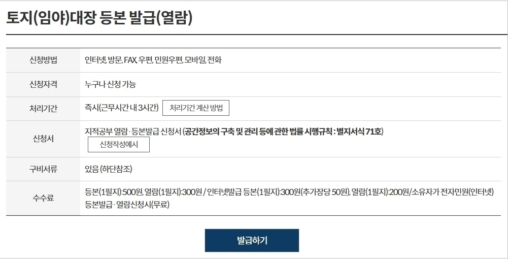 토지대장 무료열람 민원24 인터넷발급